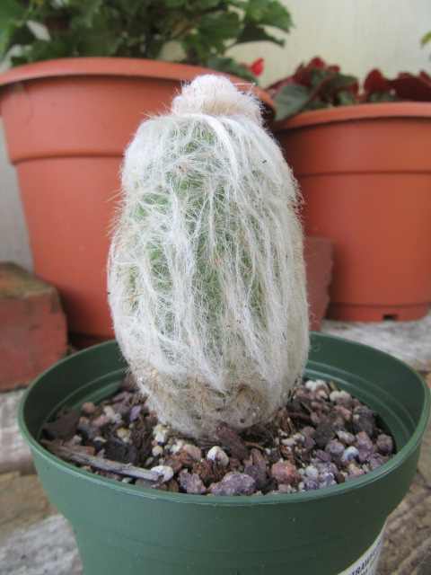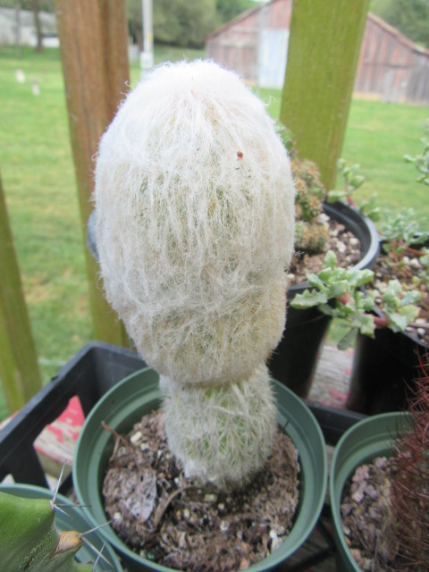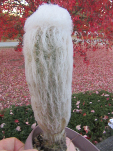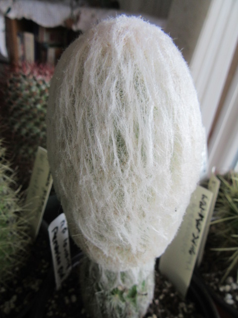 November 29 was a nice spring-like day, so I took the cactus to the back porch for a photoshoot. I was working on a post to show the difference between the cactus in my collection. Later on that evening when I was labeling the photos, I noticed I had forgotten to take a photo of the Espostoa melanostele so I had to do it in the dining room.