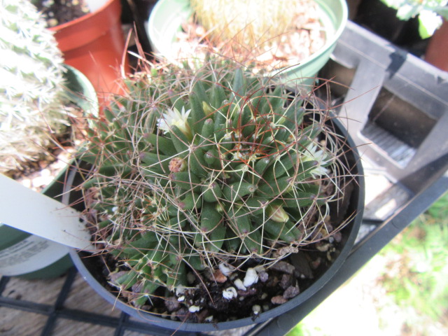 Once warmer temperatures came I moved the plants back outside. I had put the Mammillaria decipiens in a larger pot earlier since the sides were bulging.