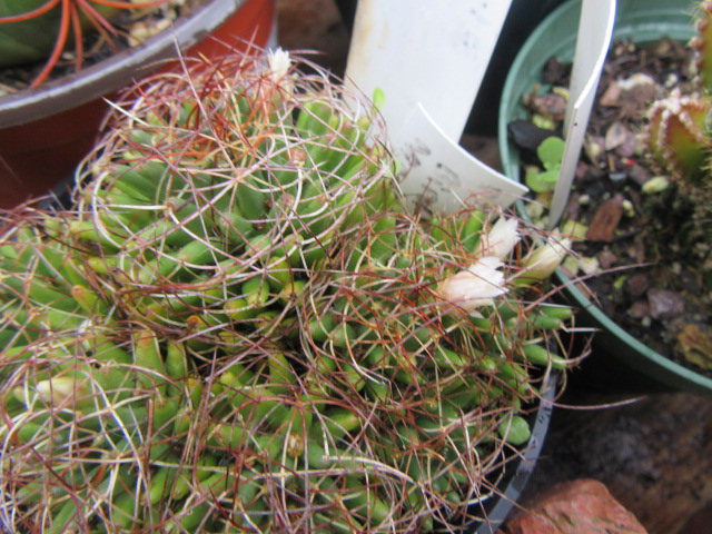 The Mammillaria decipiens has certainly been strutting its stuff with all the flowers. I am glad the flowers aren’t pink…
