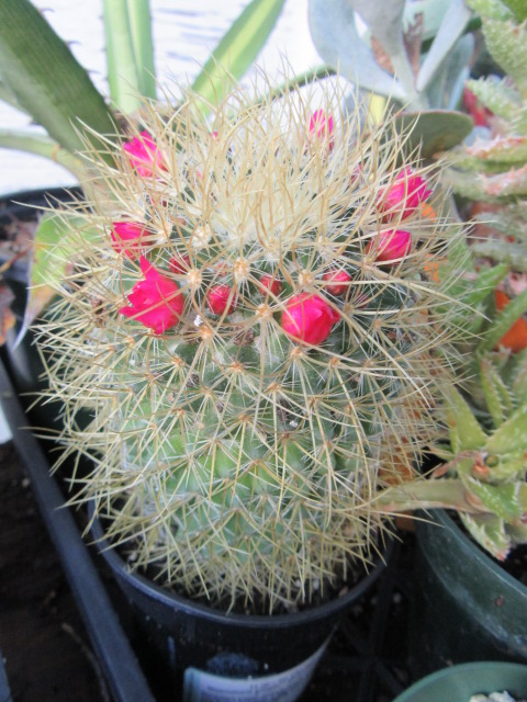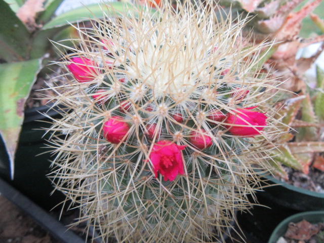 Mammillaria pringlei produce flowers just about any time of the year but mostly in June or July and in the fall after I bring the plants inside. I put this cactus on the kitchen windowsill for the winter with a few others in 2017. It received morning sun and did very well there.