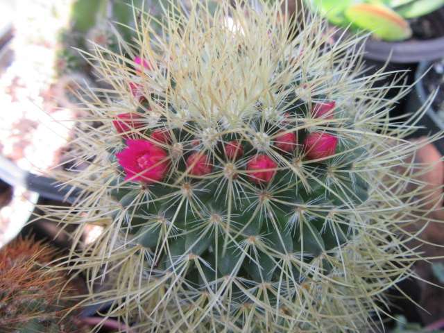 The Mammillaria pringlei flowers periodically during the summer and was getting a good start when the above photo was taken on 6-24-21.