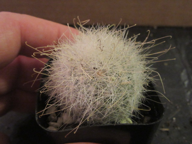 Mammillaria senilis after it came in the mail at 1″ tall x 1 1/2″ wide on 11-30-20, #766-2.
