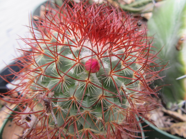 Mammillaria rhodantha bud on 9-27-17, #379-9.
