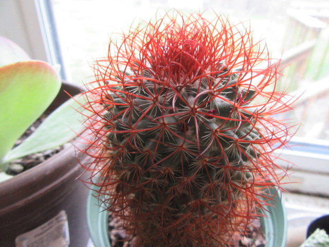 In my opinion, the Mammillaria rhodantha was a great spiny companion and is very easy to grow. Mammillaria species, in general, are very popular because they do so well and come in a variety of shapes and sizes. Many species are readily available and one can get addicted to collecting them. Now I will have to find another one to replace it, but I think it may be very difficult to find one with red spines…