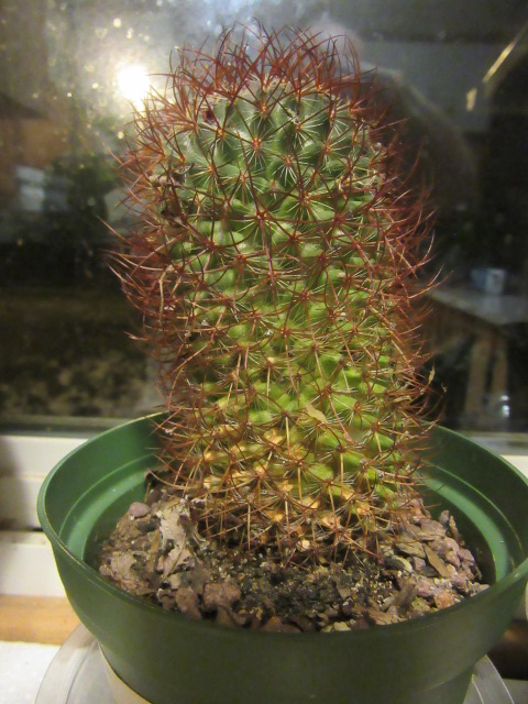 When I brought this plant from Walmart on February 1, 2016, the label just said Mammillaria species. I looked at a lot of photos online and on the Llifle (Encyclopedia of Life) website and could not figure it out. Finally, I sent an email and photos to Daiv Freeman of the CactuiGuide and he suggested it was a Mammillaria rhodantha. Even though the red spines would be a sure distinguishing feature, apparently I hadn’t looked at enough photos to get that far and so many mainly feature the flowers and not the spines. There are many red or brownish-red spined species of cactus in several other genera besides Mammillaria. But, of course, the tubercles and the way they are arranged are distinguishing characteristics of Mammillaria species. Plus, not all Mammillaria rhodantha have reddish spines… It’s complicated…