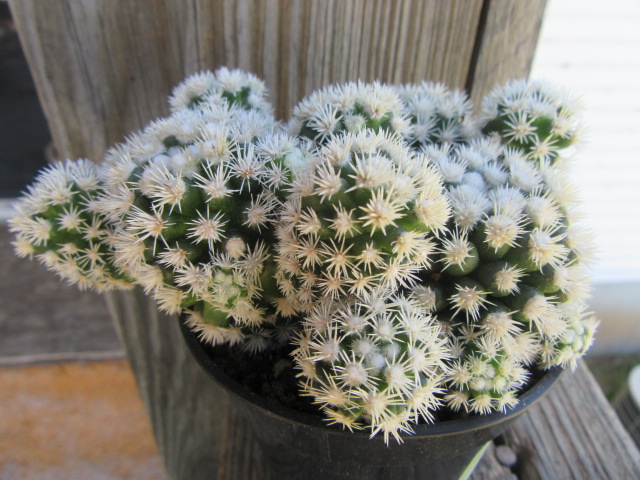 Mammillaria vetula subsp. gracilis ‘Arizona Snowcap’ look their best if grown in full sun, so I put it on the back deck with most of the other cactus.