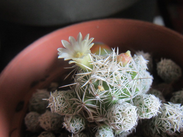 I took a few more photos of some of the Mammillaria flowering in my small collection on 11-6-20 for a new post. It’s always funny to see this plant flowering when it is so small.