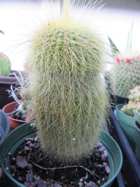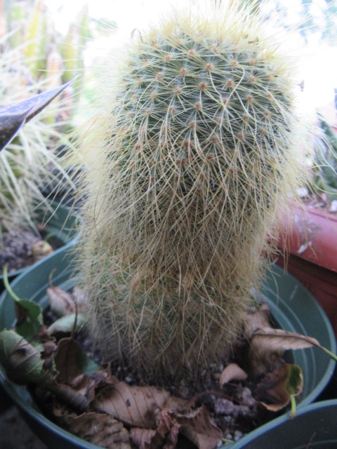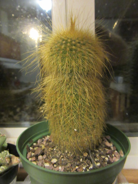 The Parodia lenninghausii is tolerating the winter inside. The shorter one stayed in front of a south-facing window.