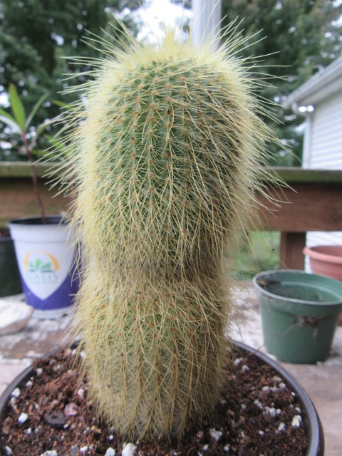 November 29 was a nice spring-like day, so I took the cactus to the back porch for a photoshoot. I was working on a post to show the difference between the cactus in my collection. Hmmm… I just noticed I wrote Notocactus leninghausii on one label and Parodia lenninghausii on the other. GEEZ!