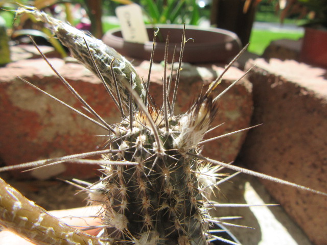 Setiechinopsis mirabilis (Speg.) Backeb. ex de Haas is now (or one again) the accepted scientific name for this species. The genus and species were described as such by Th. de Haas in Succulenta in 1940. He gives credit to Curt Backeberg for naming both the genus and species. It was first named and described as Echinopsis mirabilis by Carlo Luigi Spegazzini in Anales de Museo Nacional de Buenos Aires in 1905.
