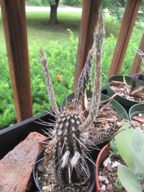I repotted several cacti and succulents so their soil would be nice and loose for the winter and some needed bigger pots. I decided I better put the Setiechinopsis mirabilis in a larger pot since it had been in the same small pot since I brought it home. Well, even though it was supposed to die after flowering, I thought I would give it the benefit of the doubt…
