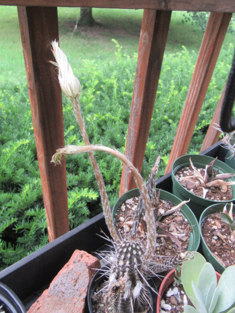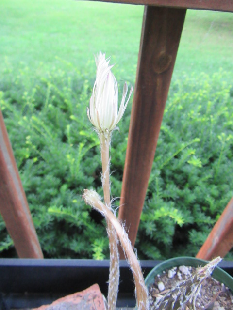 I had forgotten, or overlooked, the fact that the Echinopsis mirabilis is a night bloomer. GEEZ!!!