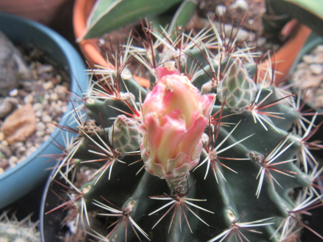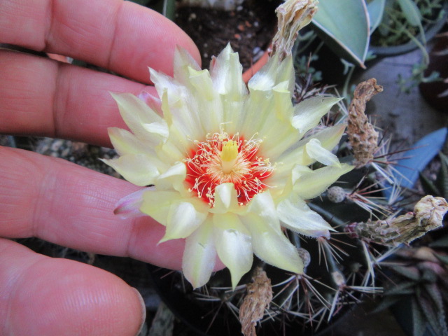 Normally, I don’t have cacti that produce so many flowers in succession. They bloom and that’s it. One of the reasons I think the blog reader was correct in saying this is a Thelocactus setispinus is that they produce several flowers in succession.