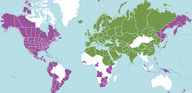 The above distribution map for Stellaria media is from Plants of the World Online. Areas in green are where the species is native and purple is where it has been introduced. The map on the USDA Plants Database for the United States and Canada is the same.