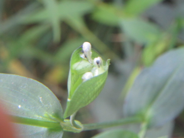 On September 18 I noticed a few Commelina communis var. ludens near the swampy area in the southeast corner of the farm. These flowers had open bracts like they were supposed to. As flowers start to emerge, the “closed” bracts open…