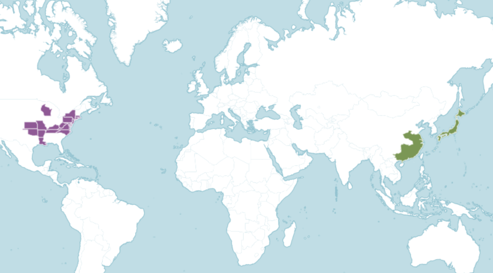 The above map from Plants of the World Online shows where Commelina communis is native in green and purple where it has been introduced. The USDA Plants Database shows a similar map of the United States but also includes the state of Washington.