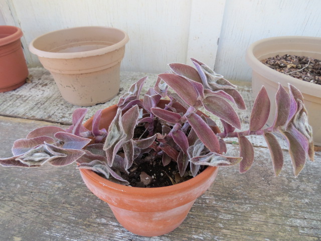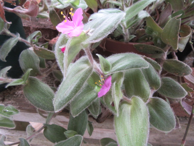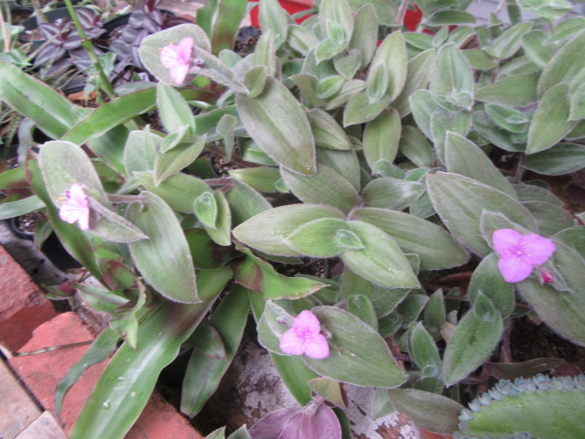 I have several Tradescantia species, but this one is by far the neatest. I like its hairy leaves and the way they grow opposite each ther all the way up the stems.
