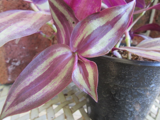 I brought this Tradescantia zebrina home from Wagler’s Greenhouse on 9-13-18 along with the Tradescantia fluminensis ‘Variegata’. Although basically any “trailing” Tradescantia is commonly referred to as Wandering Jew, “officially” T. zebrina is the Inch Plant and T. fluminensis is the Small-Leaved Spiderwort.