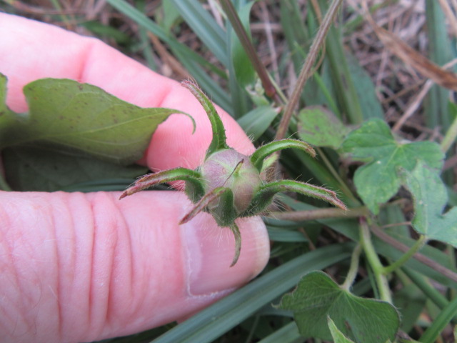 The flowers have funnelform corollas (petals), are about 2” or so wide, and can be purplish to light blue in color with white to yellowish-white centers. The flowers are surrounded by calyces with five teeth which often burl outward at their tips.
