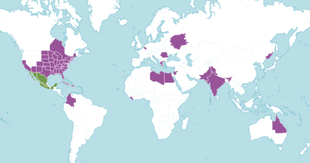 The map on iNaturalist shows where members have made observations. Anyone can join and it is a great website to confirm and share your observations. The maps on iNaturalist are continually updated as members post new observations.