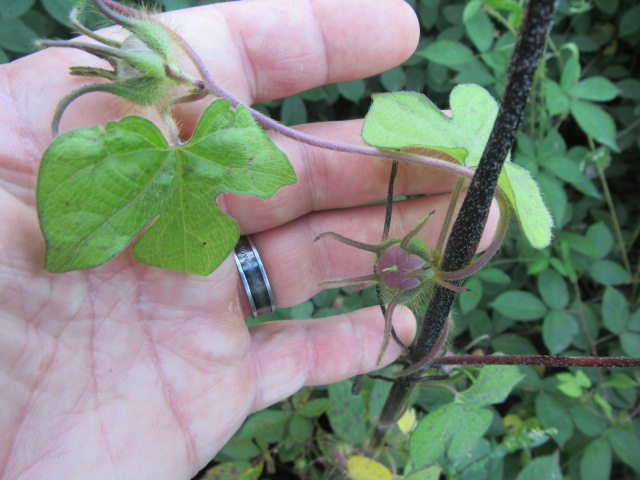 The summer of 2023 was very hot and dry, and my mid-summer most wildflowers that normally bloom all summer just dried up. I found one Ipomoea hederacea along a wooded area in the south hayfield where it received ample shade that kept it from drying up.