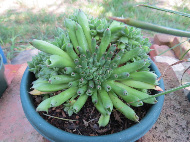 When I was living in Mississippi, a friend of mine brought me a cutting of this plant in 2009. It took right off and grew like crazy. Neither one of us knew what it was as he took the cutting from a yard when he was walking to my house. I got acquainted with Margrit Bischoffberger from the International Crassulaceae Network in 2013 and she told me it was Lenophyllum acutifolium. There is very little online about this species but I have seen variegated forms on Ebay. It is virtually indestructible so I am surprised it isn’t more popular. Heck, when I was moving plants inde for the winter (when I was in Mississippi), a leaf fell into a pot of decaying leaves by the back door. They took root and when I moved back to Missouri in 2013 that is the pot I brought with me. I had to give up most of my plants in 2014 and this was one of them. I have tried finding another one since with no luck…