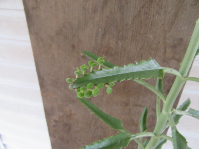 Once the flowers faded, they were replaced by odd-looking plantlets… The light wasn’t so great while in the bedroom in front of a west-facing window. I am certain that’s why the plantlets looked weird.