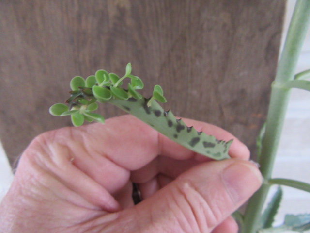 Well, I should let a few grow since this species of Kalanchoe is monocarpic. All the species that produce these funky plantlets are monocarpic, meaning the main plant will die after flowering. Fortunately, they are supposed to produce offsets (from the stem). With the K. laetivirens, which has bloomed several times, the offsets make much better plants and grow MUCH quicker than plants grown from the plantlets. I am hoping the same will be true for this plant. I read on the International Crassulaceae Network,