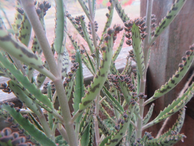 The Kalanchoe daigremontiana did very well during the summer on the front porch despite the heat and drought. The plant was 43″ tall…