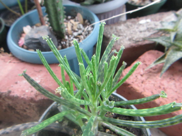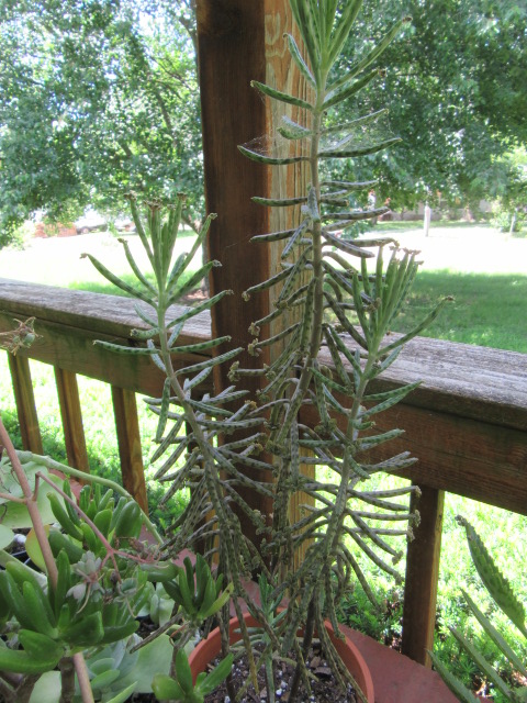 I always photograph and measure the cactus and succulents as I move them in (well, I don’t measure all of the succulents). The Kalanchoe delagoensis did very well over the summer and measured 16 1/2″ tall. Hmmm… I forgot to measure it when I brought it home…
