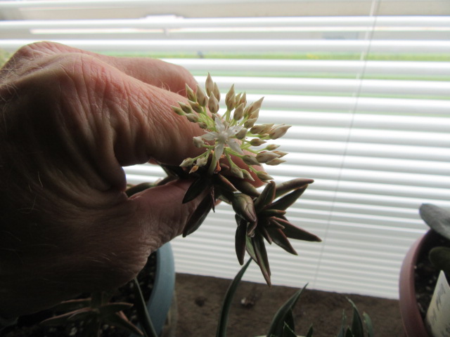 I brought a pot of sedum home from Lowe’s in 2012 whose label said Sedum glaucophyllum when I was living in Mississippi. Margrit Bischofberger of the International Crassulaceae Network said it was the incorrect name. I never did figure out what it actually was. It did great for a while but fizzled out later in the summer. I don’t have a page for this species because I don’t know exactly what it is…