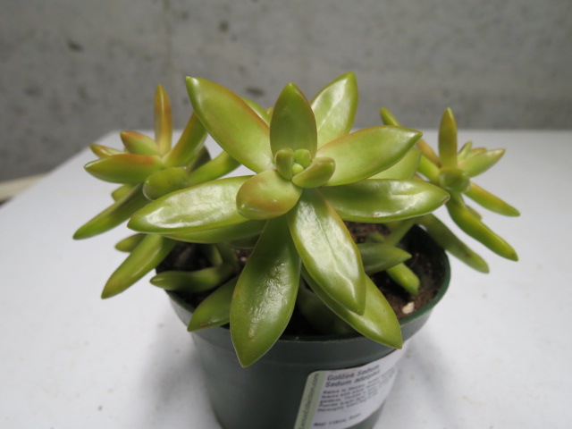 Sedum adolphi is very easy to grow and does well in pots inside and out. It prefers bright light but even does OK in light shade. Water very sparingly over the winter. It is very easy to propagate from both stem and leaf cuttings. Just let the stem or leaves scab over for about 7 days before you put them in the soil to root.