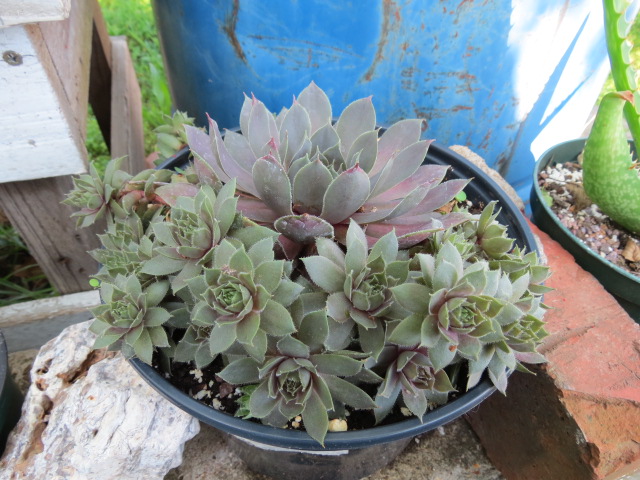 I brought this Sempervivum tectorum (House Leek, Hens-and-Chickens, Jupiter’s Bears, Live Forever, Etc.) home from Wagler’s Greenhouse in 2014. I kept it in a pot inside over winter in the basement and it did fine.
