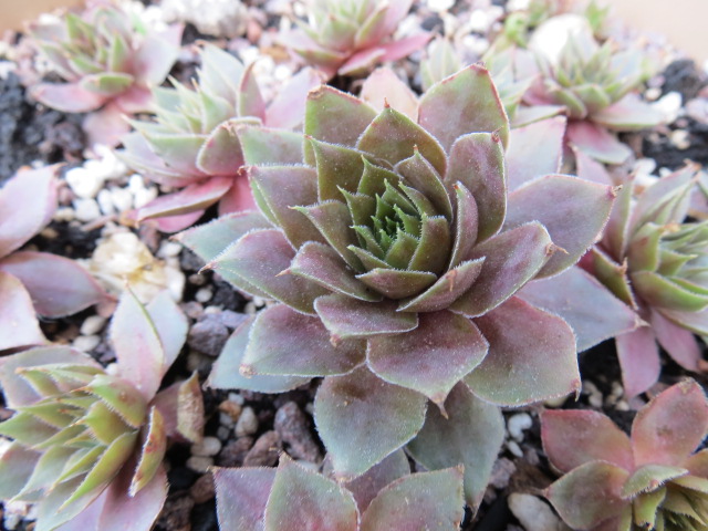 Sempervivum are very easy to grow and they only have a few rules. The most important is their soil and water. They need very well-draining soil and raised beds are very good for that reason. They are great in containers in potting soil amended with extra perlite and chicken grit or pumice. I used 2 parts potting soil amended with 1 part chicken grit (from the feed store) and 1 part perlite for many years. Many cactus and succulent growers and collectors recommend pumice over perlite, so in 2018 I started using a 50/50 combination of potting soil and pumice. Sempervivum aren’t especially fond of a peaty mix because it holds water which is why it needs to be amended. Sand shouldn’t be used unless it is very course because it fills up the airspace in the potting soil. Of course, basically, the only potting soil I can find locally is peat-based.