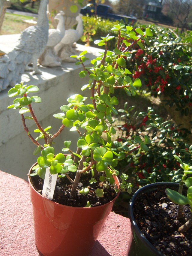 I bought two pots of Portulacaria afra from Lowe’s in Greenville, Mississippi in 2009 while living at the mansion in Leland. #2 was a little smaller and it never did grow near as well as #1.