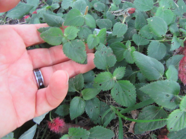 The small leaves kind of reminded me of strawberry leaves. The Latin meaning for Acalypha is from a Greek word meaning nettle.