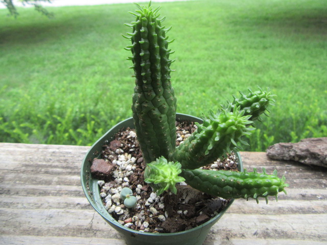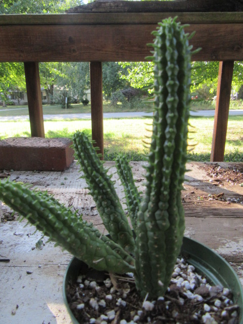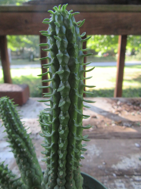 Hmmm… The Euphorbia mammillaris is an oddball of sorts. The main stem and its branches keep getting longer. They don’t want to grow like I want them to, so I have to keep a brick next to the pot to keep it from falling over… Yeah, it has an intruder…