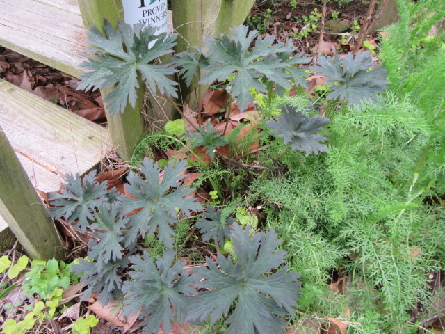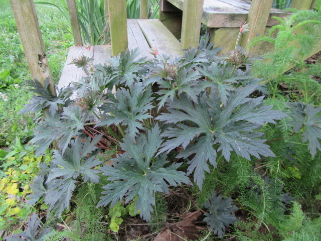 I found this Geranium pratense ‘Boom Chocolatta’ at Muddy Creek Greenhouse on May 10 in 2024 and had to bring it home. I really liked its dark leaves.
