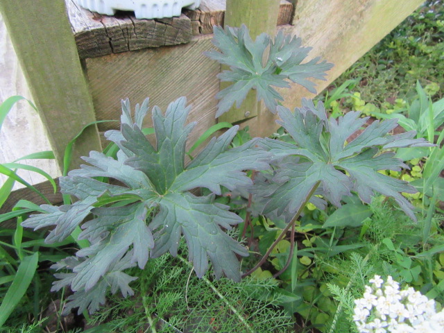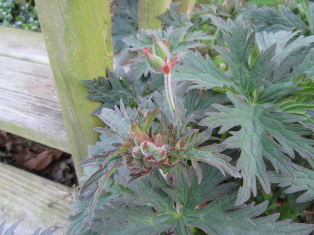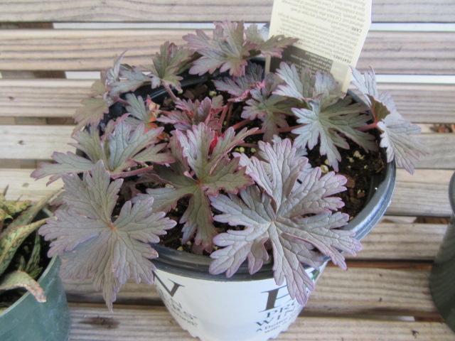Geranium pratense ‘Boom Chocolatta’ (Meadow Cranesbill) after I brought it home on 5-10-24, #989-2.