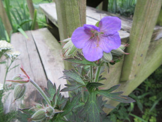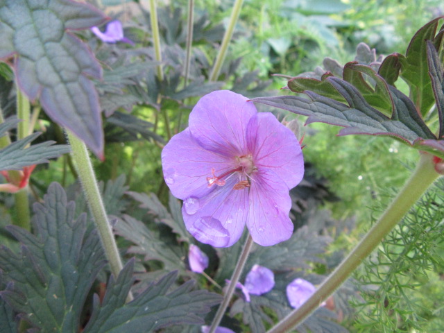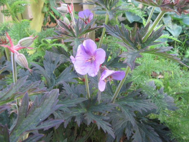Geranium pratense ‘Boom Chocolatta’ with 32″ tall flower stems on 6-20-25, #1062-4.