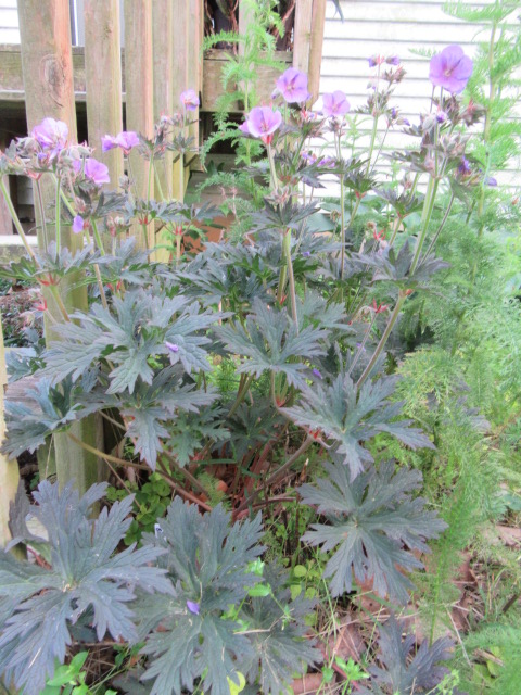 Geranium pratense ‘Boom Chocolatta’ (Meadow Cranesbill) on 7-5-24, #1000-10.