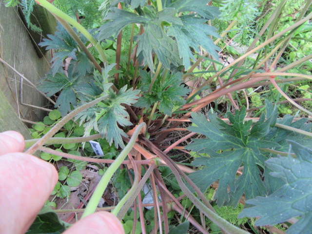 Geranium pratense ‘Boom Chocolatta’ stems on 6-20-25, #1062-6.