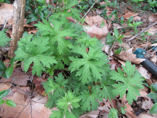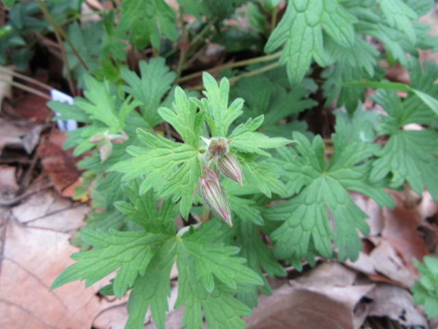 Geranium pratense ‘Johnson’s Blue’ on 4-29-25, #1039-3.