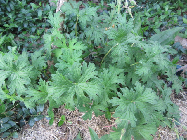 Geranium pratense ‘Johnson’s Blue’ on 4-21-25, #1038-13.