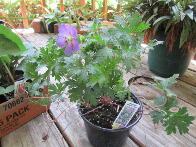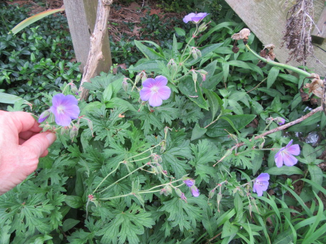 Geranium pratense ‘Johnson’s Blue’ after I brought it home on 5-28-24, #994-1.