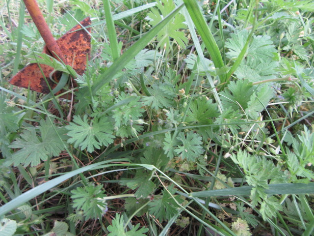 Besides my observation under the elm tree, Geranium pusillum can be found along edges of woodlands, along river and stream banks, old fields, along back roads, cemeteries, fields, pastures, disturbed areas like gardens and flower beds, etc…