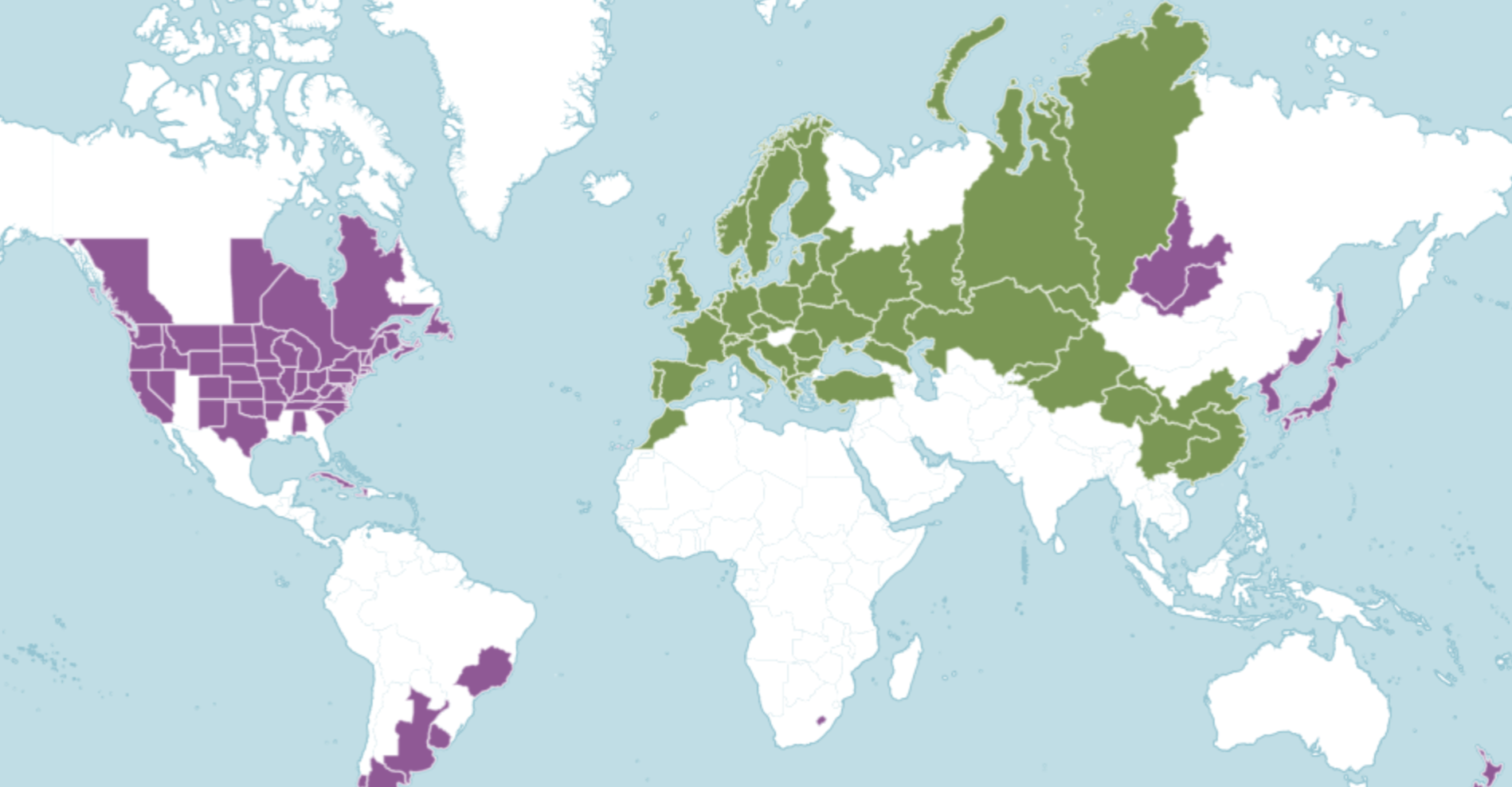 The above distribution map for Hypericum perforatum is from Plants of the World Online. Areas in green are where the species is native and purple is where it has been introduced. The map on the USDA Plants Database for the United States and Canada is similar.