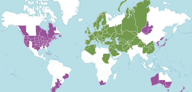 The above distribution map for Hypericum perforatum is from Plants of the World Online. Areas in green are where the species is native and purple is where it has been introduced. The map on the USDA Plants Database for the United States and Canada is similar.
