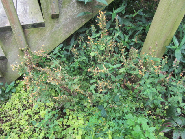 Agastache ‘Kudos™ Gold’ in the bed next to the side porch on 5-17-17, #443-4.