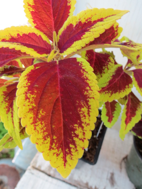 I brought this Coleus home in the spring of 2015 and it was similar to one I grew when I lived in Mississippi. This color combination is very bright and this one is TOPS in that category, too. The contrasting red and yellow just makes the color POP out at you!